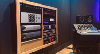 La control room A vanta un'acustica sapientemente realizzata, garantendo una riproduzione del suono incontaminata. Materiali e trattamenti acustici accuratamente selezionati creano un ambiente che riduce al minimo le interferenze e massimizza la chiarezza dell'audio.