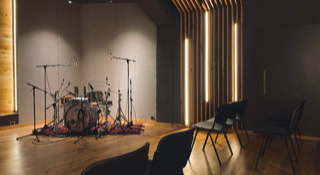 La live room è meticolosamente realizzata per l'eccellenza acustica. Tutti i materiali sono stati selezionati, il legno, le trappole acustiche, i tessuti e il pavimento creano un ambiente che raggiunge il perfetto equilibrio tra calore naturale e acustica controllata. Con i suoi 70 mq la stanza consente movimenti illimitati e un’ambiente spazioso e rilassante ideale per qualsiasi genere musicale, dal rock, al pop, al jazz fino alla classica.